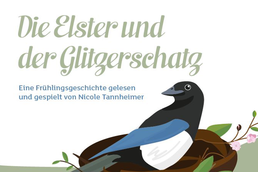 Am 16. und 23. März 2022, jeweils 14.30 Uhr und 15.30 Uhr, wird in der Flauderei die zauberhafte Frühlingsgeschichte "Die Elster und der Glitzerschatz" von Nicole Tannheimer gelesen und gespielt. Ein Vergnügen für alle Kinder ab 3 Jahren, Dauer ca. 20 Minuten.