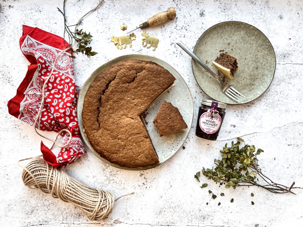Traditioneller Appenzeller Zimtfladen mit beerigem Gruss aus der Goba Manufaktur. Mit unserer feinen Vogelhochzeit Konfi schmeckt der Dessert noch besser...