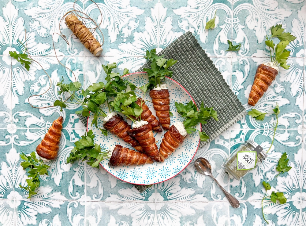 Ein Hingucker für den Osterbrunch in fröhlicher Runde. Unsere Rüebli im Blätterteig überzeugen nicht nur den Osterhasen, sondern sind mit dem Grünen Gold ein wahrer Gaumenschmaus. Und: sie haben im Gegensatz zum Schoggihasen das ganze Jahr Saison.