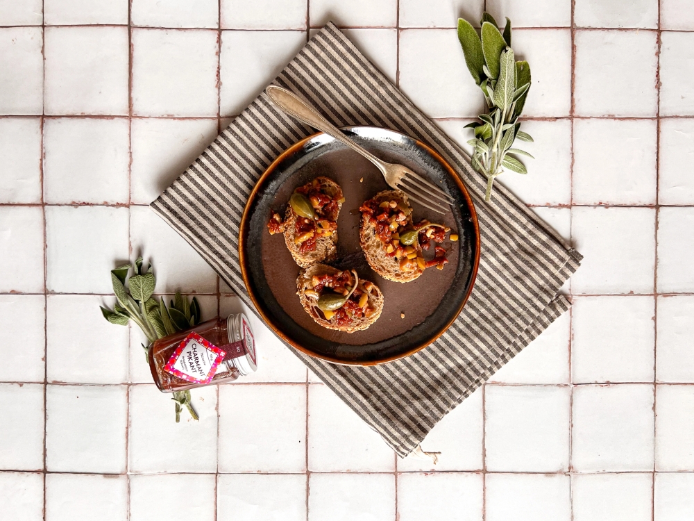 Unser Charmant Pikant im mediterranen Stil. Eine Tomaten-Oliven Kombination, der jeden Apéro bereichert.