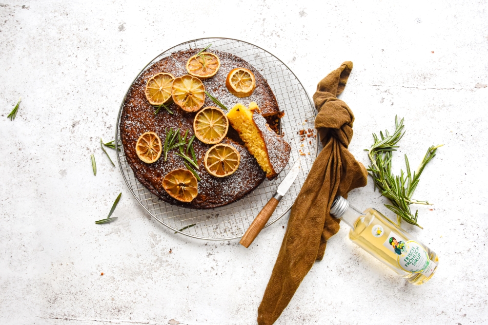 Die klassische Torta Caprese al Limone mit Frisch-Fröhlich Sirup.