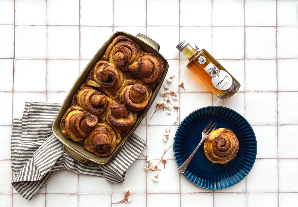...und es duftet nach Zimt und Zucker. Genussmomente für den Nachmittagskaffee. Feine Nussfüllung und ein Hauch von Zimt. Gluschtig-fein sind unsere Goba Zimtschnecken.
