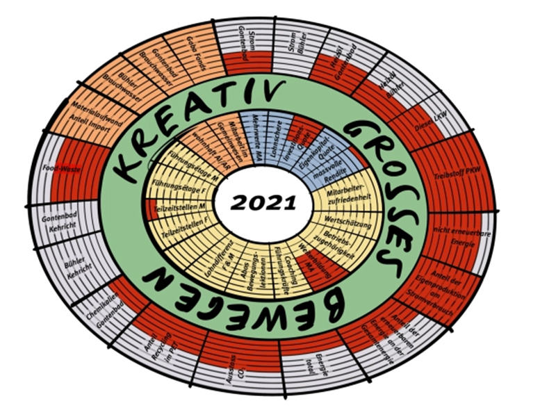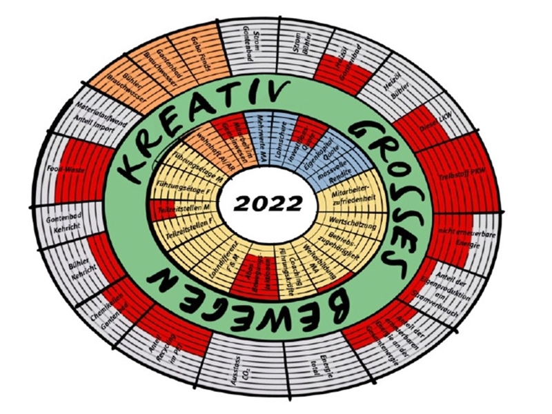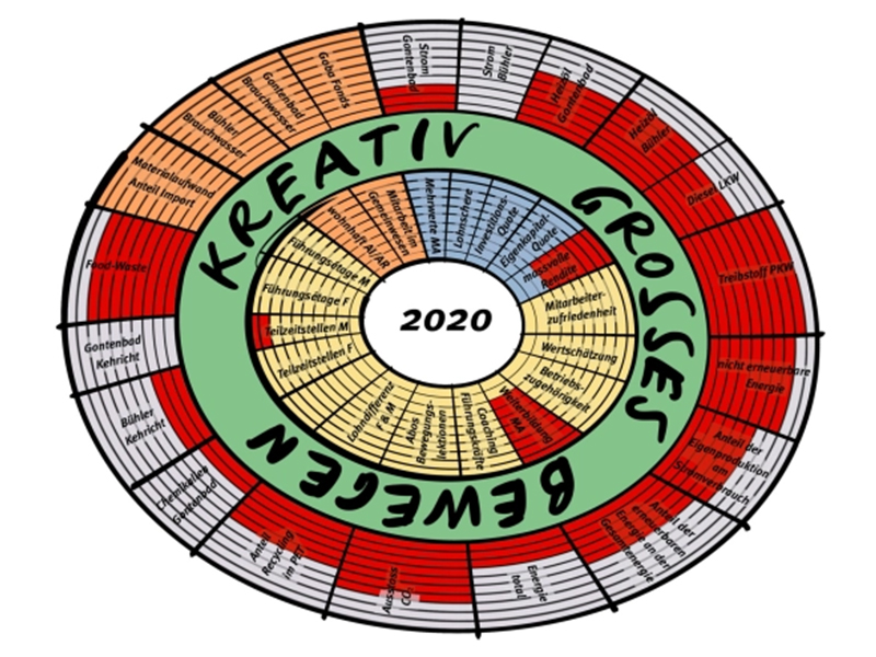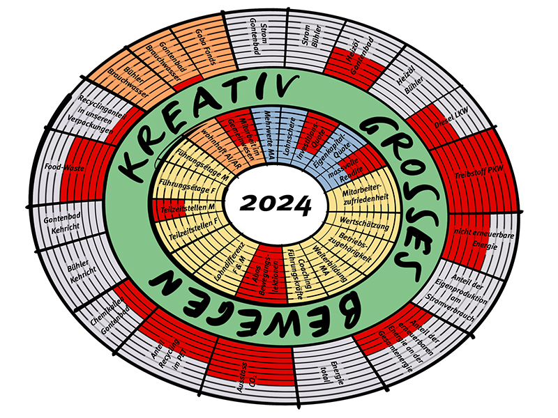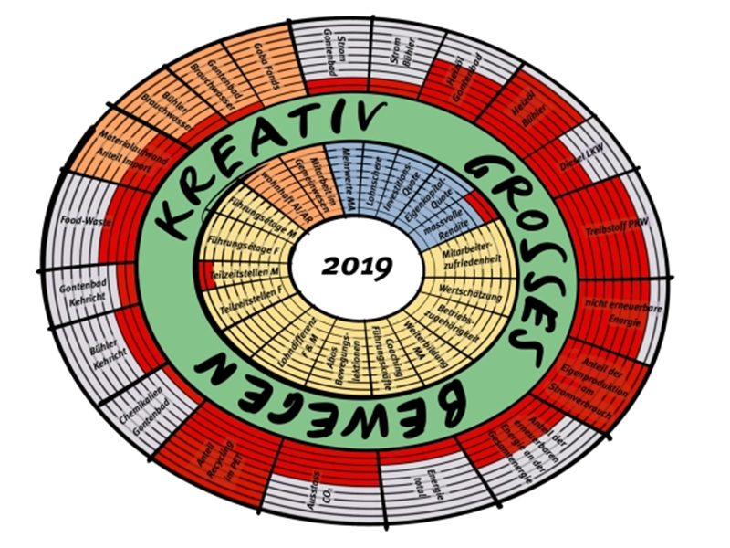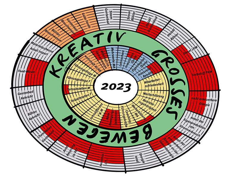 Zusammen mit Roger Gmünder, Umwelt-Ökonom, überprüfen wir neben der Entwicklung der langfristigen strategischen Ziele auch jährlich, welche sinnvollen und interessanten Aspekte der Goba in diesem Modell abgebildet werden können. Es ist also ein Hilfsmittel, welches lebt und sich mit uns entwickelt.