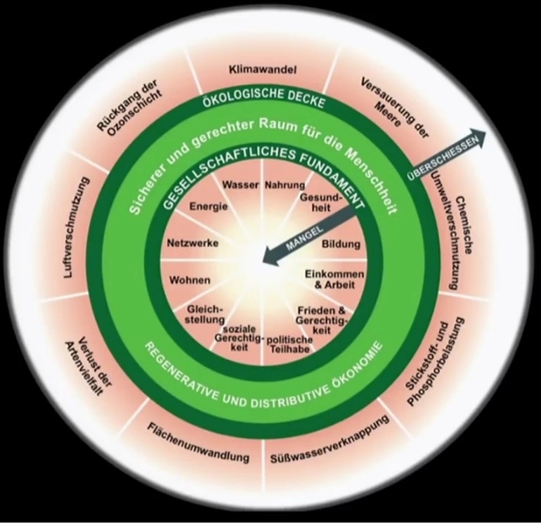 Wie können wir möglichst umfassende Transparenz schaffen für unsere Kund*innen, unsere Partner*innen, unsere Mitarbeiter*innen, für Interessierte? Auf unserer Suche begegneten wir Kate Raworth und ihrer „Donut Ökonomie“.